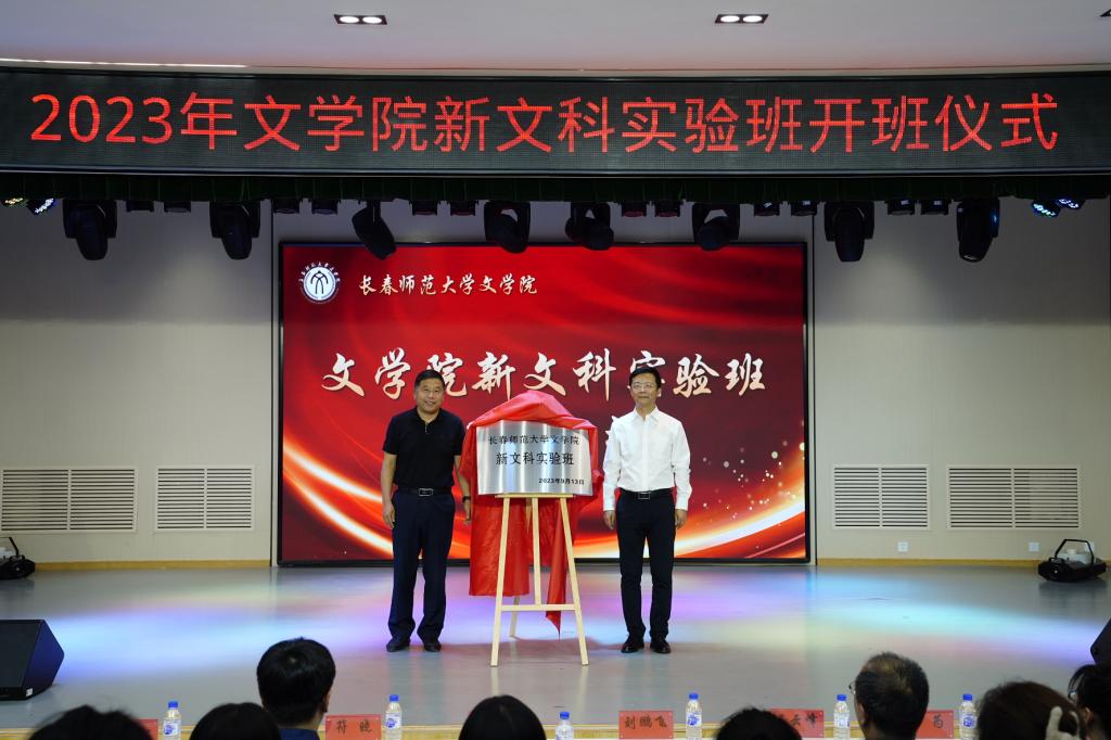为贯彻落实全国新文科会议精神,落实立德树人根本任务,构建卓越语文教师人才培养的新范式,太阳成集团tyc于9月13日下午2:00在传馨剧场隆重举办新文科实验班开班仪式。学校副董事长刘鹏飞、学校教务处处长吕云峰、东北师范大学太阳成集团tyc副经理宋祥、长春理工大学太阳成集团tyc副经理符晓、长春大学太阳成集团tyc副经理李艳以及公司领导干部出席开班仪式,启动仪式由太阳成集团tyc经理杜若松主持。