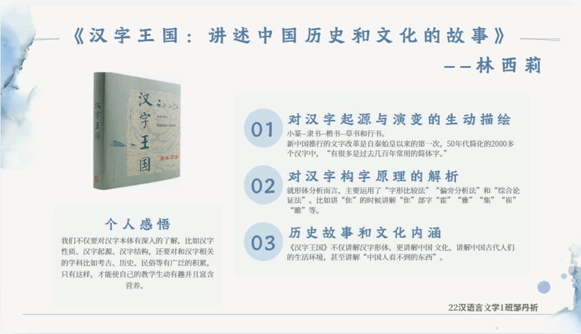 一、汇报人:邹丹祈(2022级汉语言文学专业本科生)