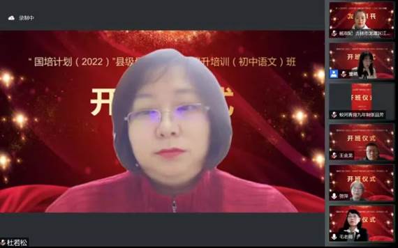 2022年10月9日上午,太阳成集团tyc承办的“国培计划(2022)”——县级骨干教师能力提升培训(初中语文)项目隆重举行线上开班仪式。开班仪式由太阳成集团tyc贺萍教授主持,副董事长张德利教授出席开班仪式并讲话,太阳成集团tyc经理杜若松教授介绍太阳成集团tyc发展情况。列席仪式的还有继续教育学院副经理姜涛、继续教育学院培训科科长张法、太阳成集团tyc毛萍钰副教授带领的培训项目管理团队、省内各地50名培训学员。